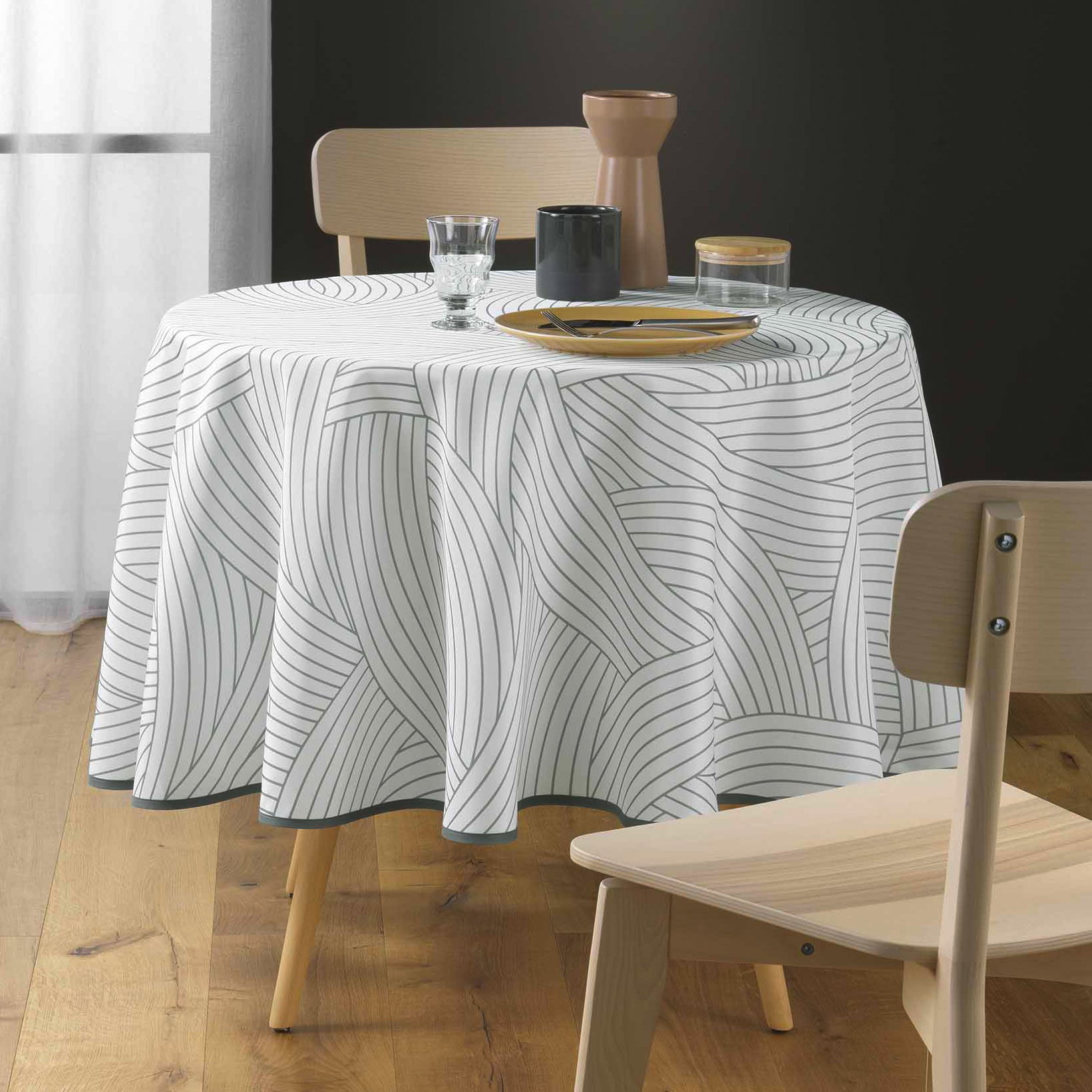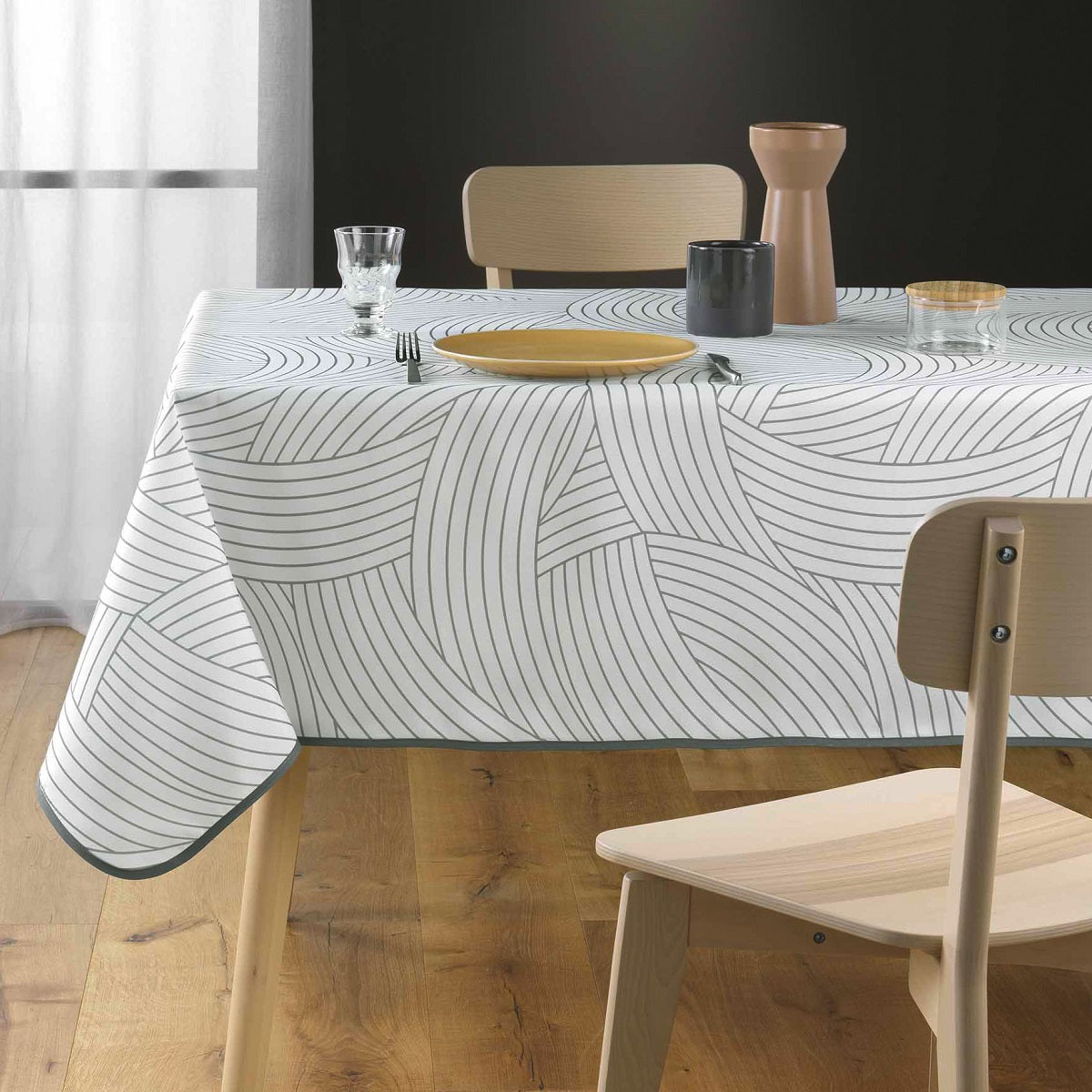 tovaglia antimacchia dalle moderne geometrie grigie su sfondo bianco. Realizzata con materiali di alta qualità, questa tovaglia non solo aggiunge un tocco di eleganza alla tua tavola, ma offre anche una protezione affidabile contro eventuali macchie. La sua fantasia geometrica grigia aggiunge un tocco contemporaneo e versatile, perfetto per adattarsi a una vasta gamma di stili di arredamento. Facile da pulire e resistente all'usura, questa tovaglia è l'accessorio perfetto per ogni occasione, dal pranzo quotidiano alle cene speciali.