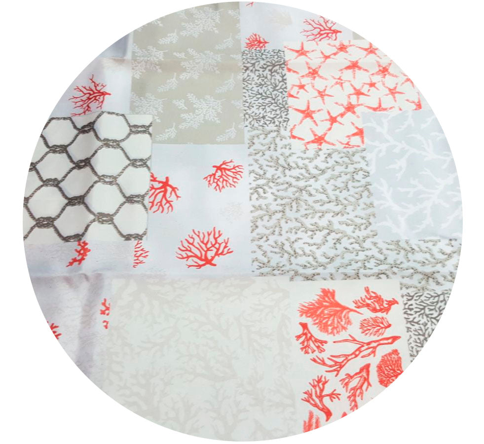Caratterizzata da una base bianca come la schiuma delle onde, questa tovaglia è adornata con disegni delicati e vivaci coralli in lieve tonalità di beige e rosso