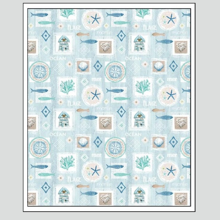 Immergiti nell'oceano con la nostra tovaglia antimacchia con disegno marino, un capolavoro che trasporta la tua tavola in un viaggio incantato tra pesci e stelle marine.