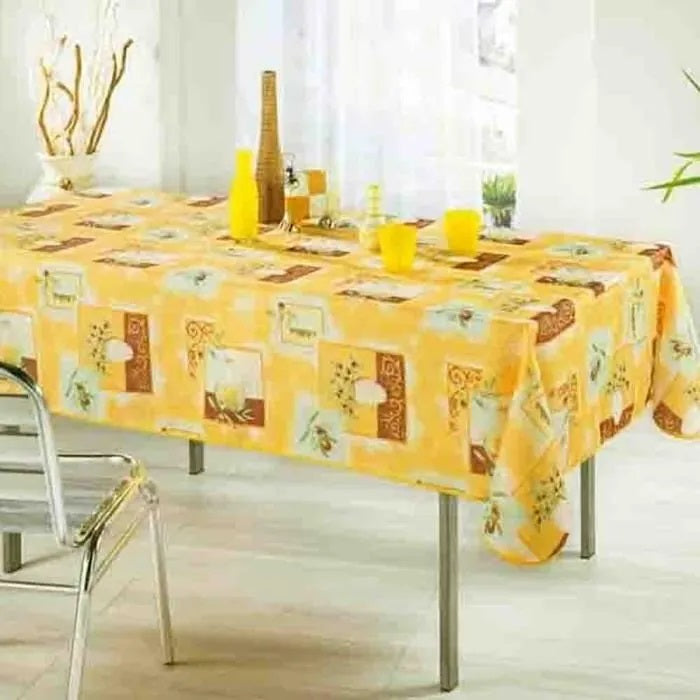 Aggiungi alla tua tavola la bellezza del Mediterraneo con la Tovaglia Antimacchia Aromates Jaune e goditi un ambiente solare e vivace ad ogni pasto!
