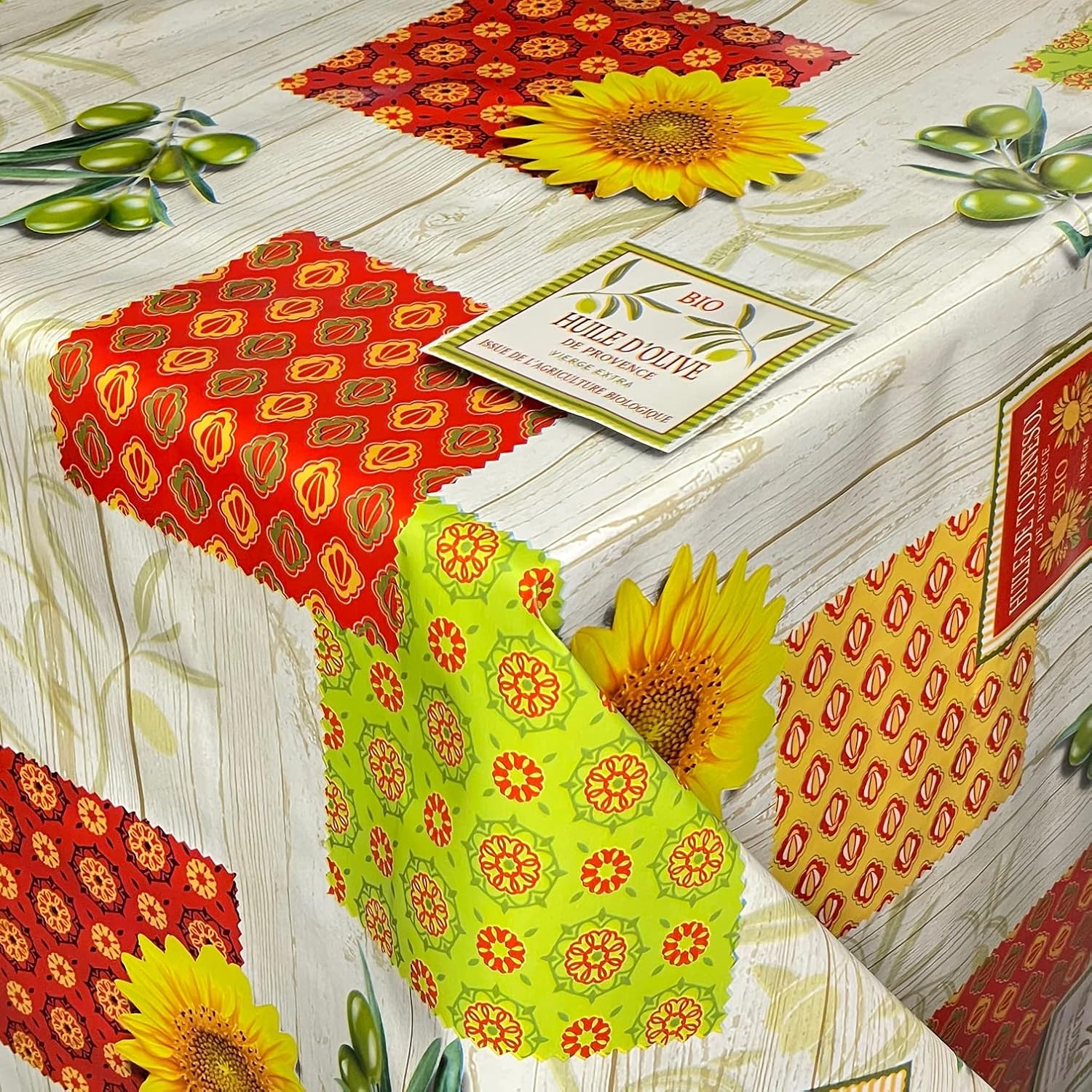 Scopri la bellezza e il calore della Provenza con la Tovaglia Antimacchia Cuisine Provençale! Questo design vivace e colorato porta sulla tua tavola il fascino del sud della Francia, con una fantasia che unisce patchwork dai colori intensi, girasoli luminosi, olive fresche e un fondo che richiama il legno naturale. Perfetta per dare un tocco rustico e solare ai tuoi pranzi e cene, questa tovaglia si adatta a ogni occasione.