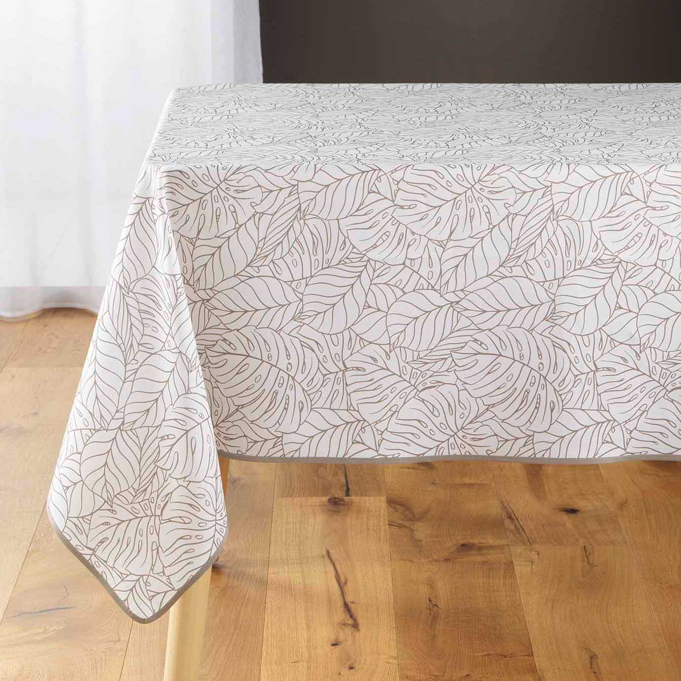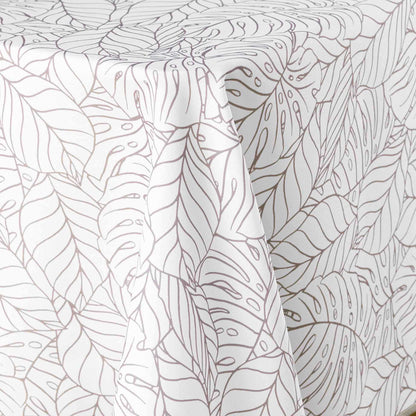 - Design tropicale stilizzato: Il motivo con foglie esotiche, realizzato in un elegante tratto neutro, dona alla tovaglia un look moderno e fresco, perfetto per creare un’atmosfera rilassante e contemporanea.