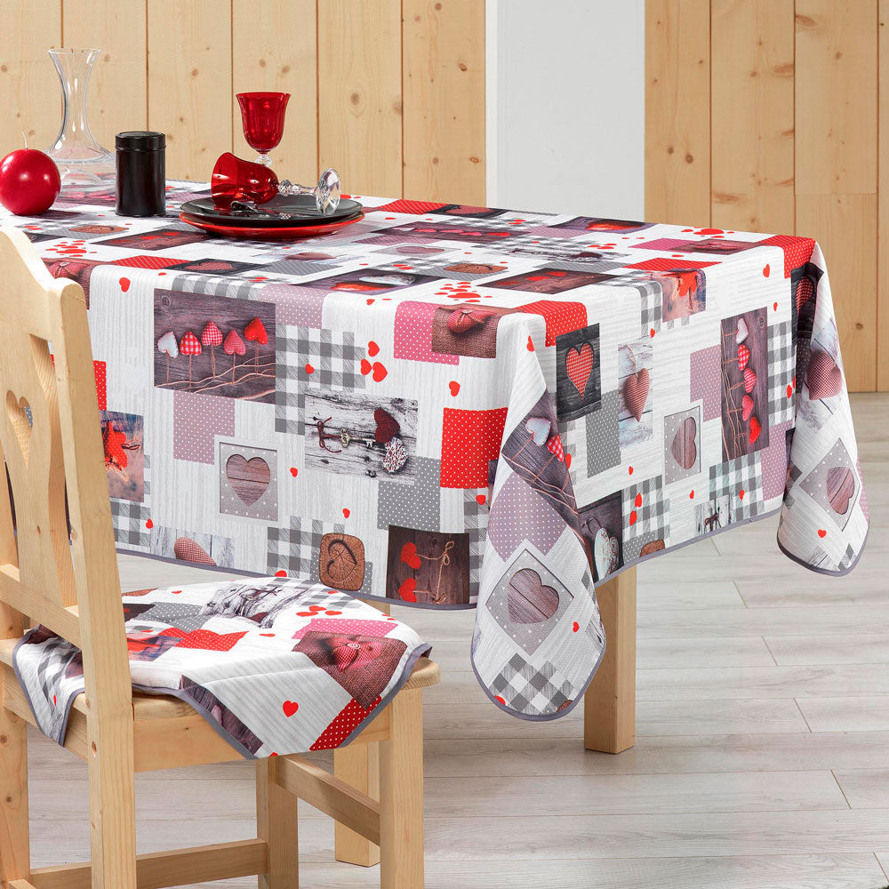 Crea l'atmosfera calda e romantica delle fredde giornate invernali direttamente nella tua casa con la nostra tovaglia antimacchia decorata con i cuori. Con un design ispirato agli chalet di montagna, questa tovaglia aggiunge un tocco rustico e accogliente alla tua tavola, perfetta per i momenti conviviali in famiglia.