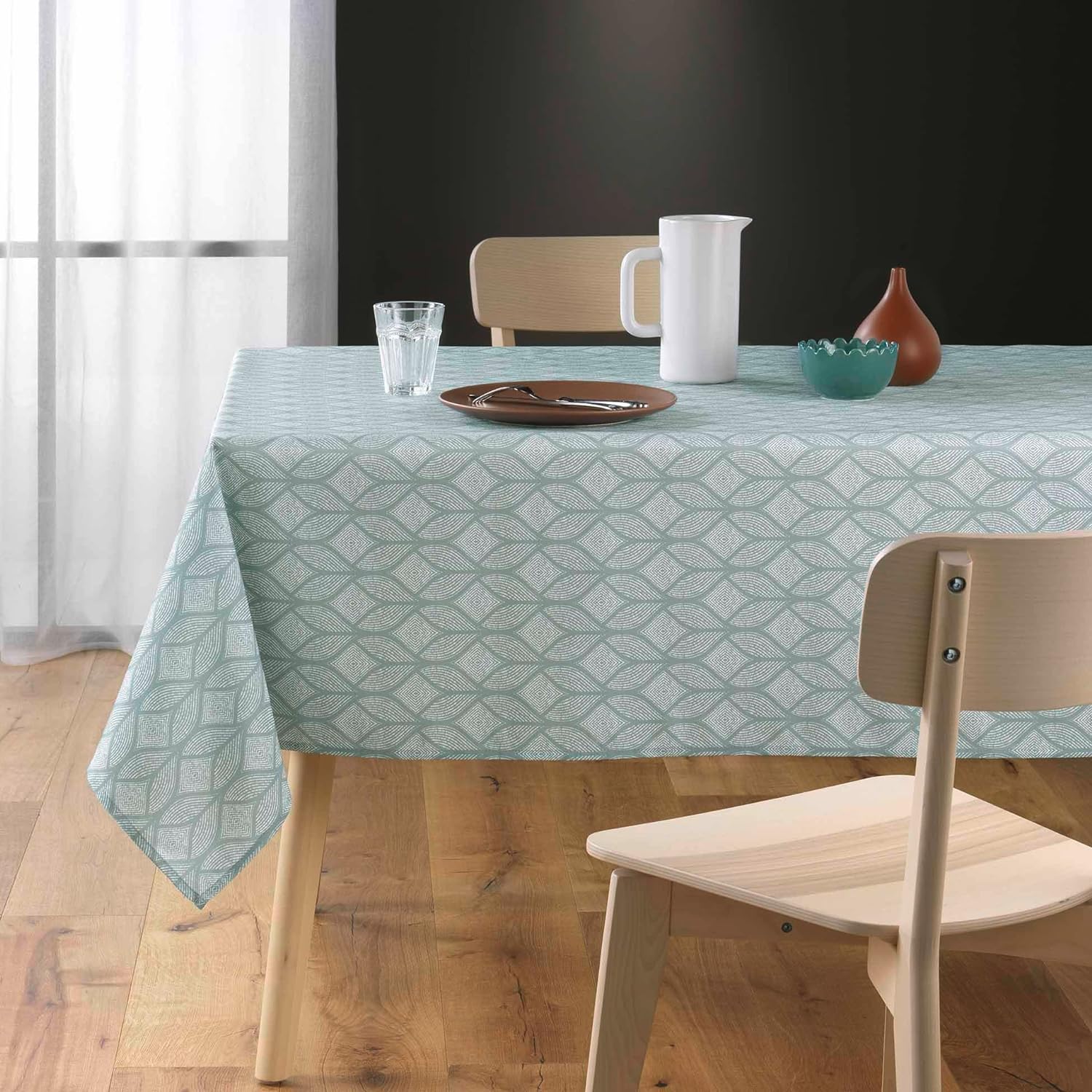 Crea un ambiente rilassante con la tovaglia antimacchia in stile etnico naturale, impreziosita dai armoniosi elementi nei toni del verde salvia